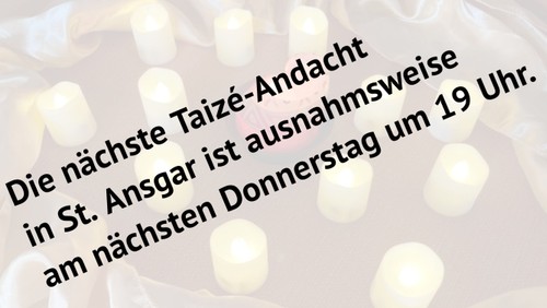 Ökumenische Taizé-Andacht erst nächste Woche!