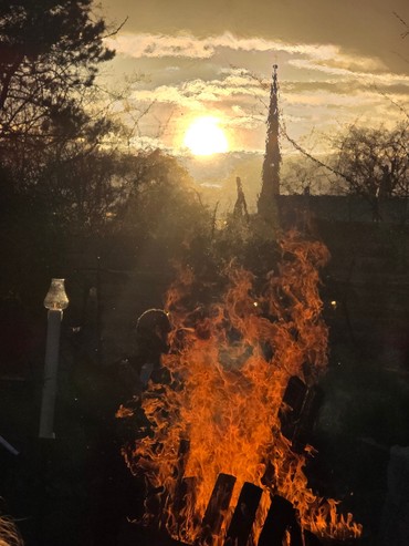 Und als gesegnet wird und die Taufkerzen entzündet und sogar ziemlich spontan getauft, reißen die Wolken auf und die Sonne ist zu einem sehenswerten Sonnenuntergang zurück. Pünktlich zum Entzünden des großen Osterfeuers im Sommergarten von St. Johannis.